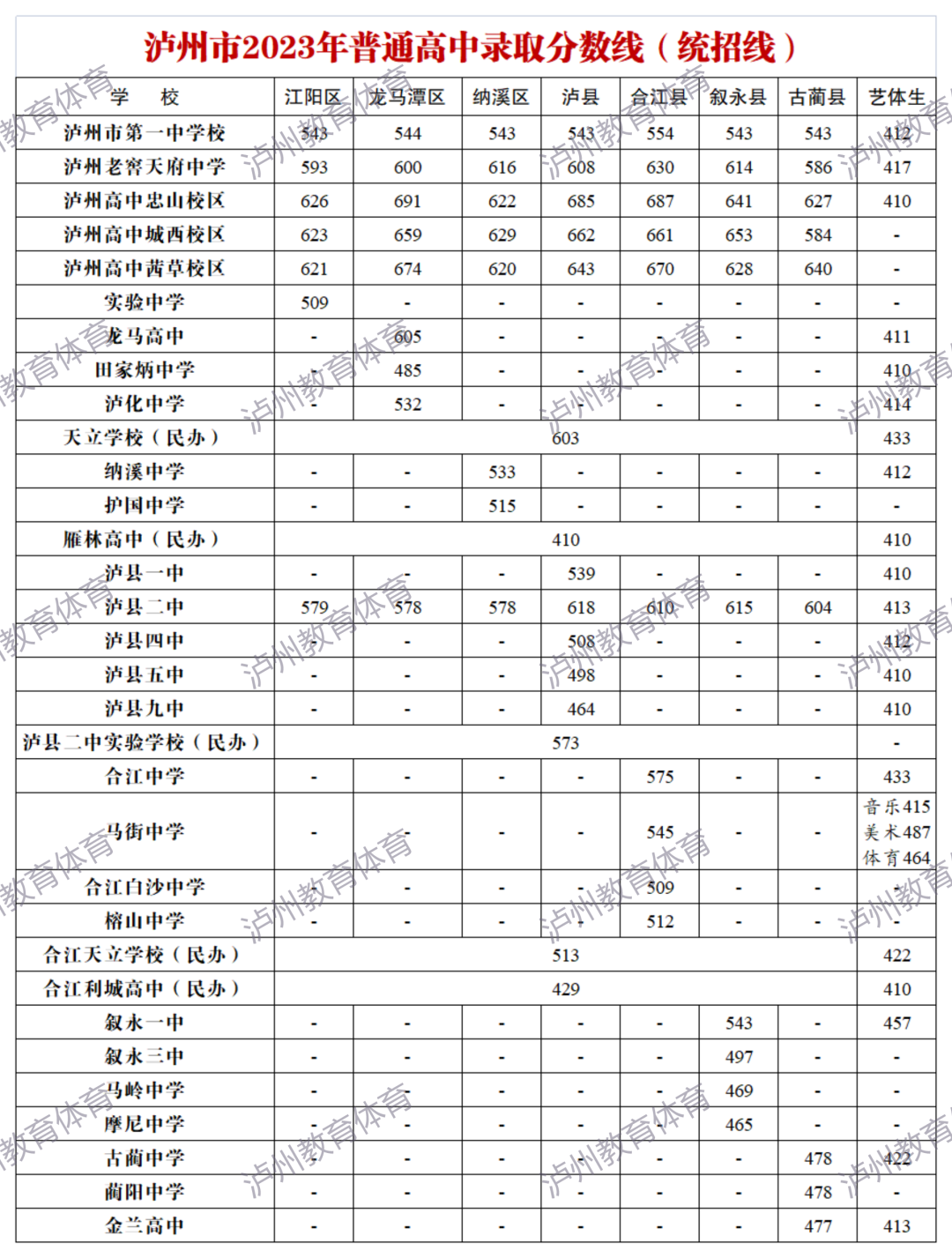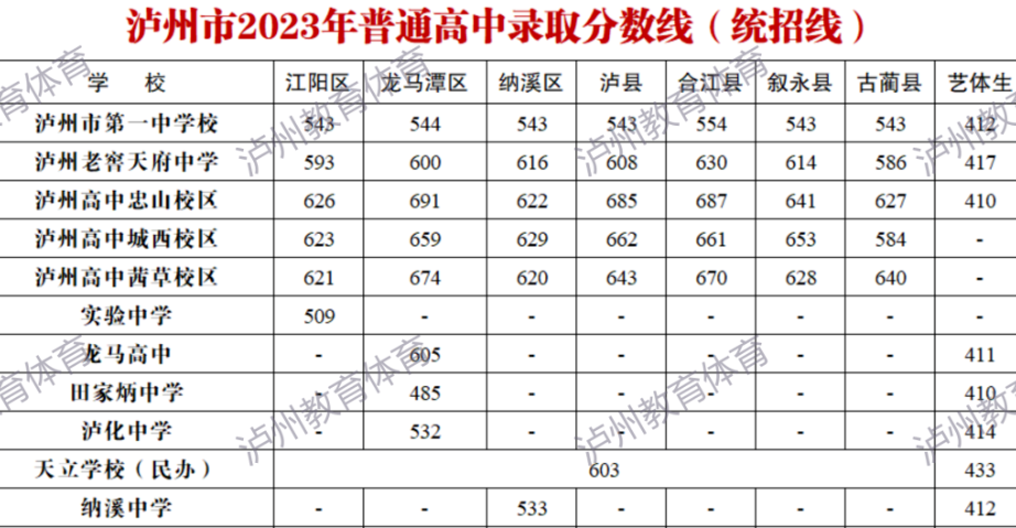 记者从泸州教育体育微信公众号获悉,泸州市2023年普通高中录取分数线(统招线)公布,一起来看。