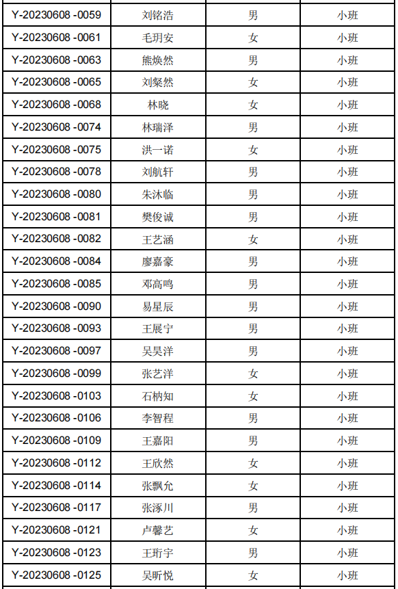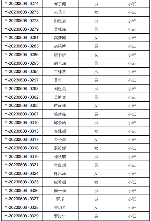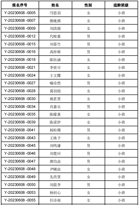 各园具体摇号名单
