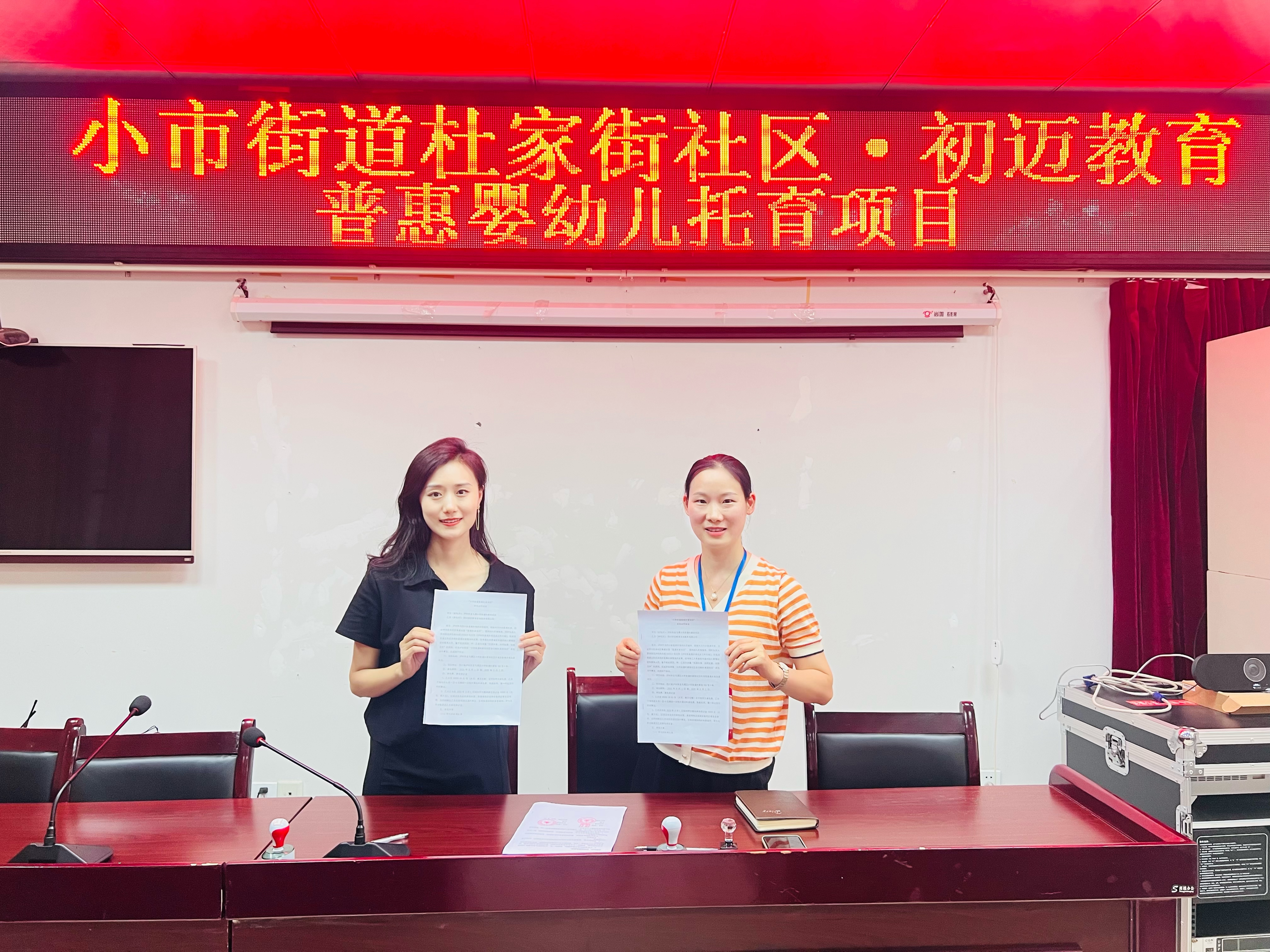 为满足辖区托育服务需求,助力儿童友好社区建设,6月25日下午,小市街道杜家街社区与初迈教育旗下的初迈托育签约仪式在社区大会议室举行。