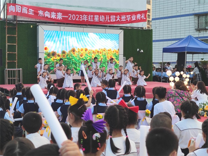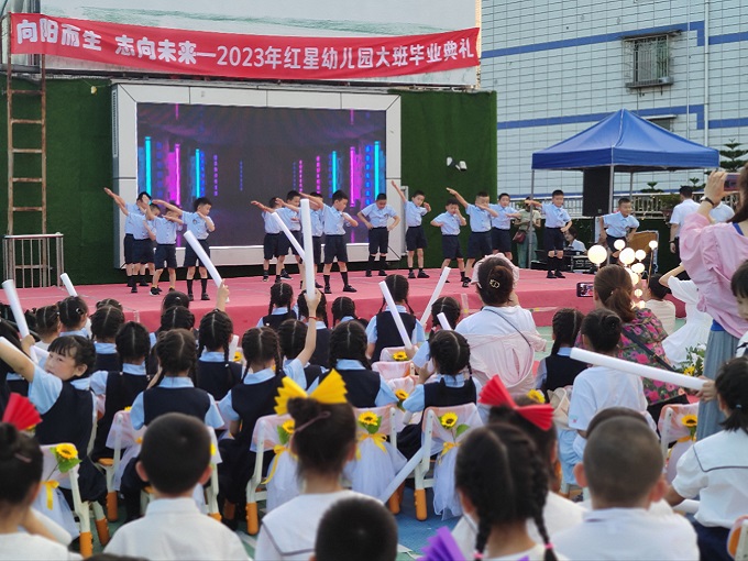 经过三年的幼儿园学习与生活,大班的孩子们即将告别老师和同伴进入小学,6月30日,泸州市龙马潭区红星幼儿园(红星园区和月亮湾园区)举行了“向阳花开,志向未来”2023届大班毕业典礼。