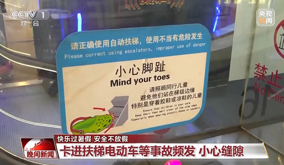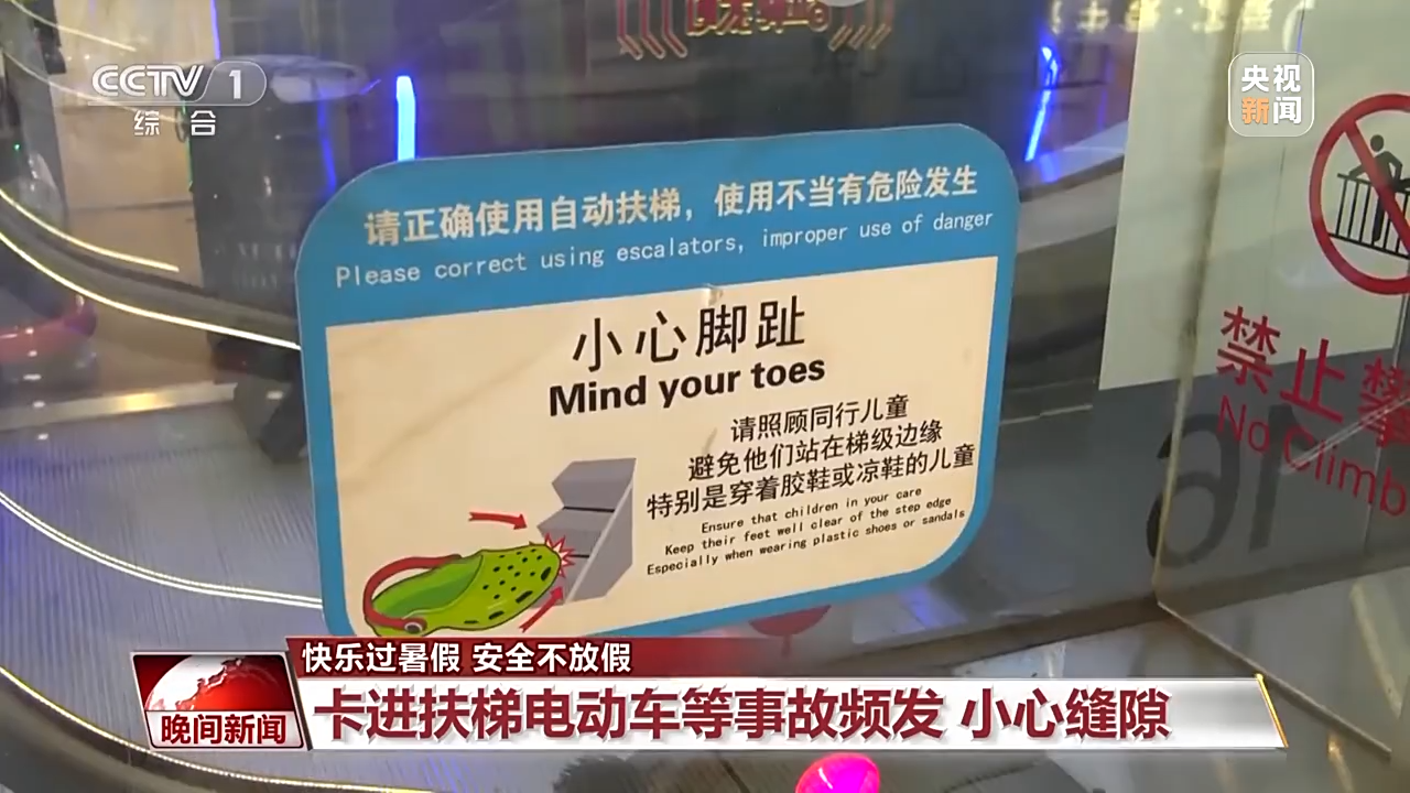 每年夏季,消防部门都会接报不少儿童穿凉鞋、洞洞鞋,被卡扶梯的求助。前不久,在浙江宁波火车南站,就有一名两岁男童的左脚被“洞洞鞋”带进了扶梯踏板与侧面挡板的缝隙中,所幸最后安全获救。消防人员表示,洞洞鞋材质较软,与扶梯梯级产生的摩擦力大,是意外发生的主要原因。